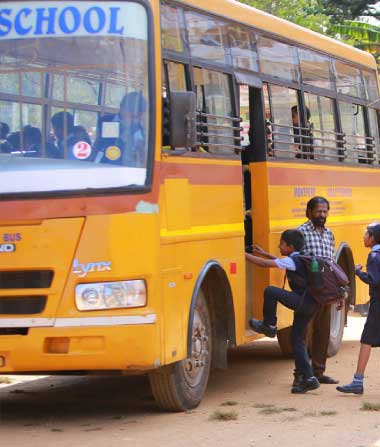 The school provides transportation facilities to students. We have well experienced and trained drivers and nannies to take care of children. Parents, who wants to send their wards by school bus should applied for the same to the principal at the beginning of the Academic year. Buses are operated in all important routes.